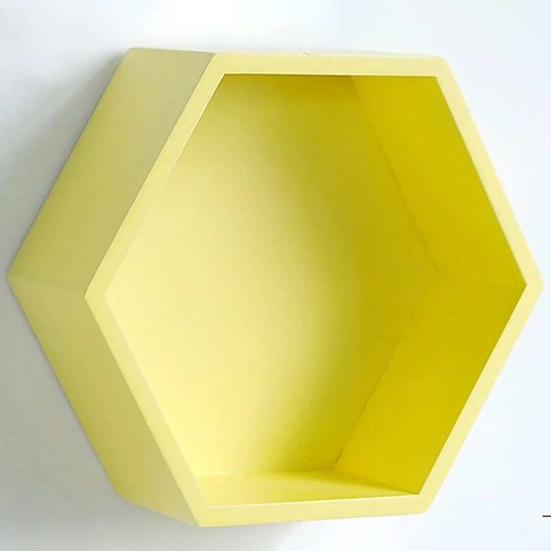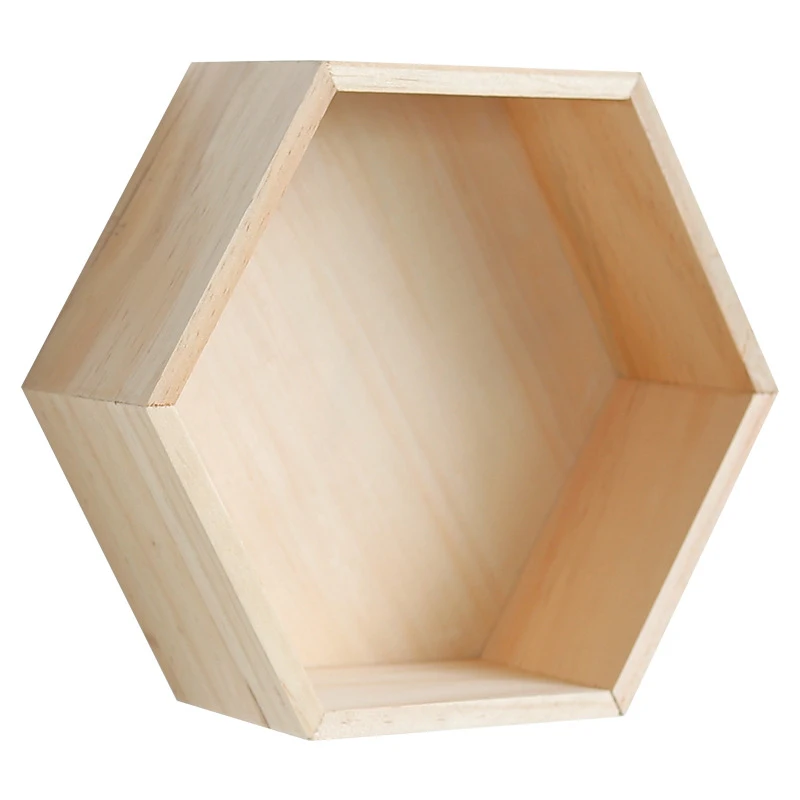 Sale Geometric Hexagonal DIY Wall Wooden Storage Shelf Restaurants Hanging Display Rack Units Decor Home