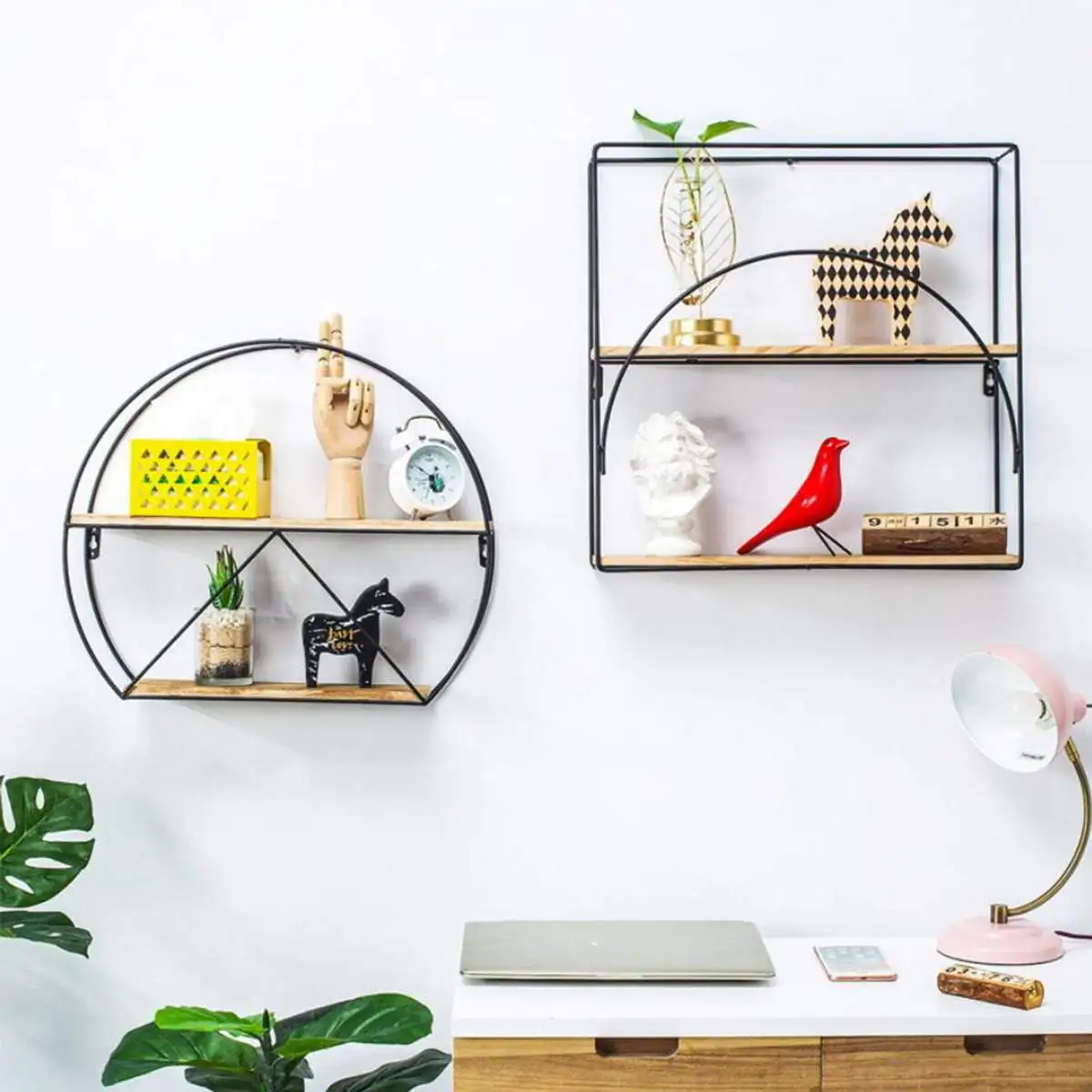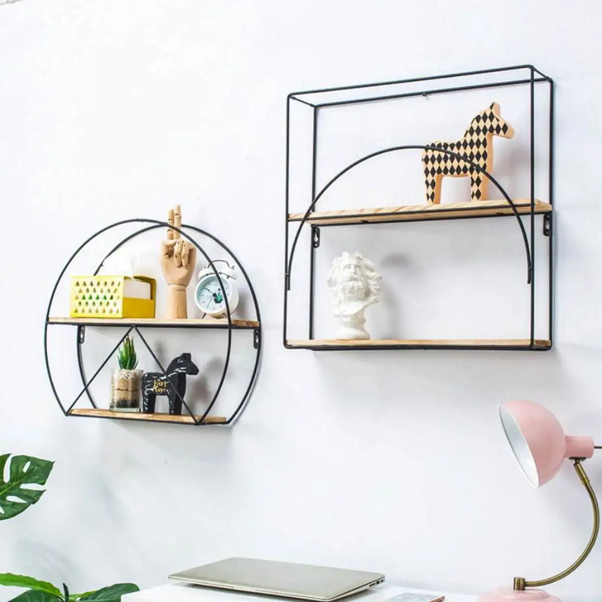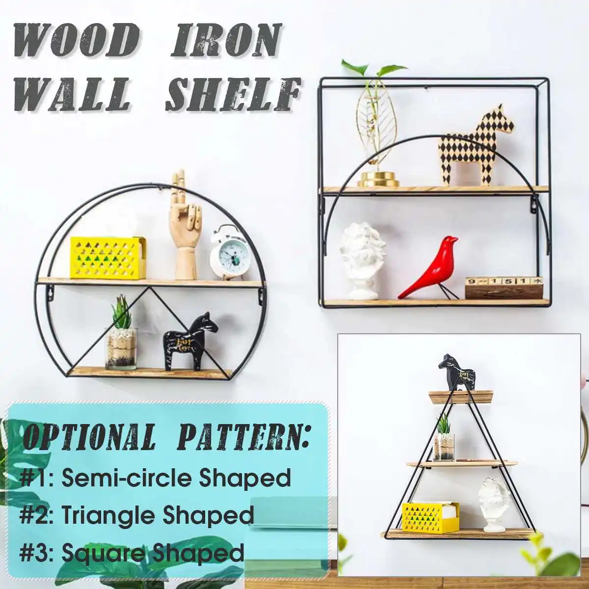 Retro Wood Iron Wall Shelf Wall Mounted Storage Rack Organization For Kitchen Bedroom Home Decor DI