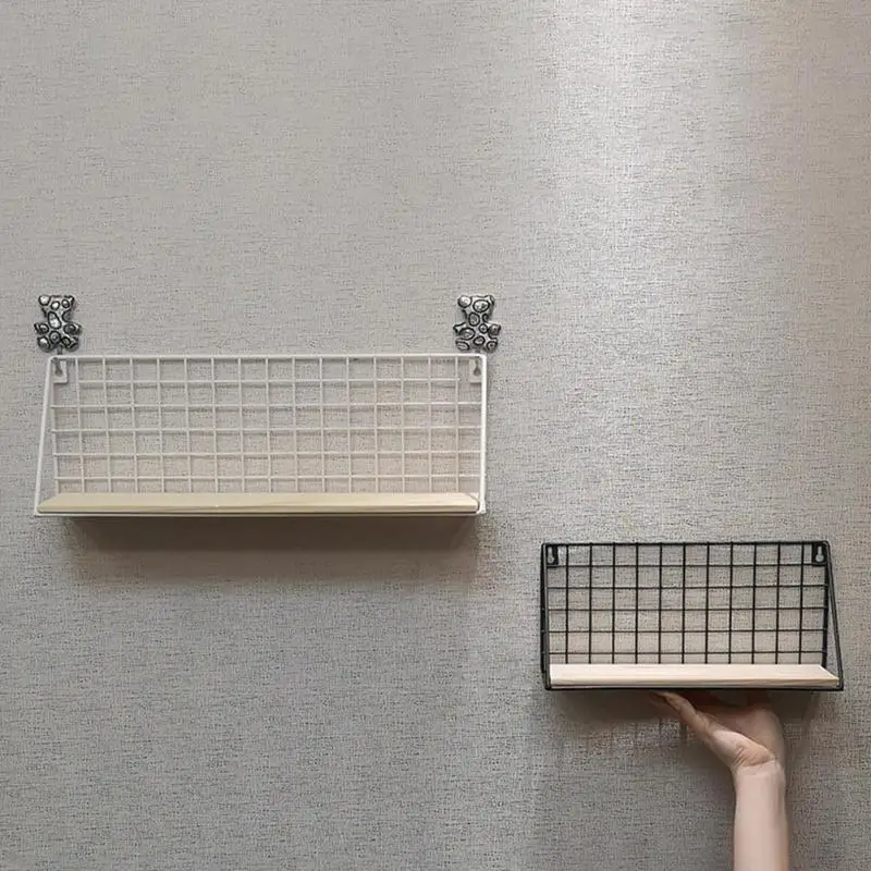 Creative New Wooden Iron Wall Shelf Wall Mounted Storage Rack Organization Bedroom Kitchen Home Kid