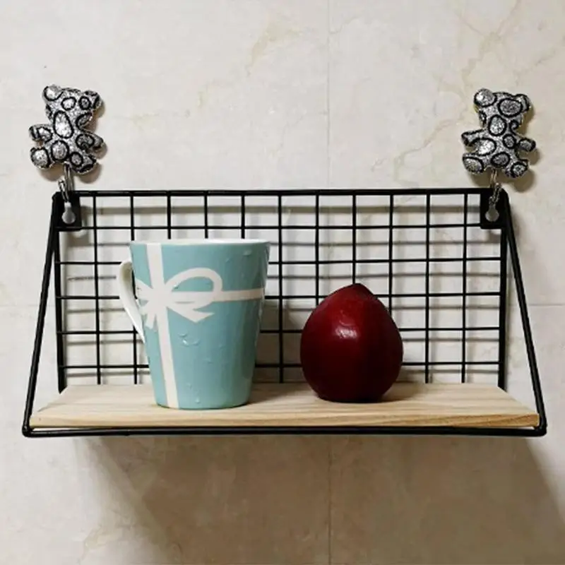 Hot deal Creative New Wooden Iron Wall Shelf Wall Mounted Storage Rack Organization Bedroom Kitchen Home Kid